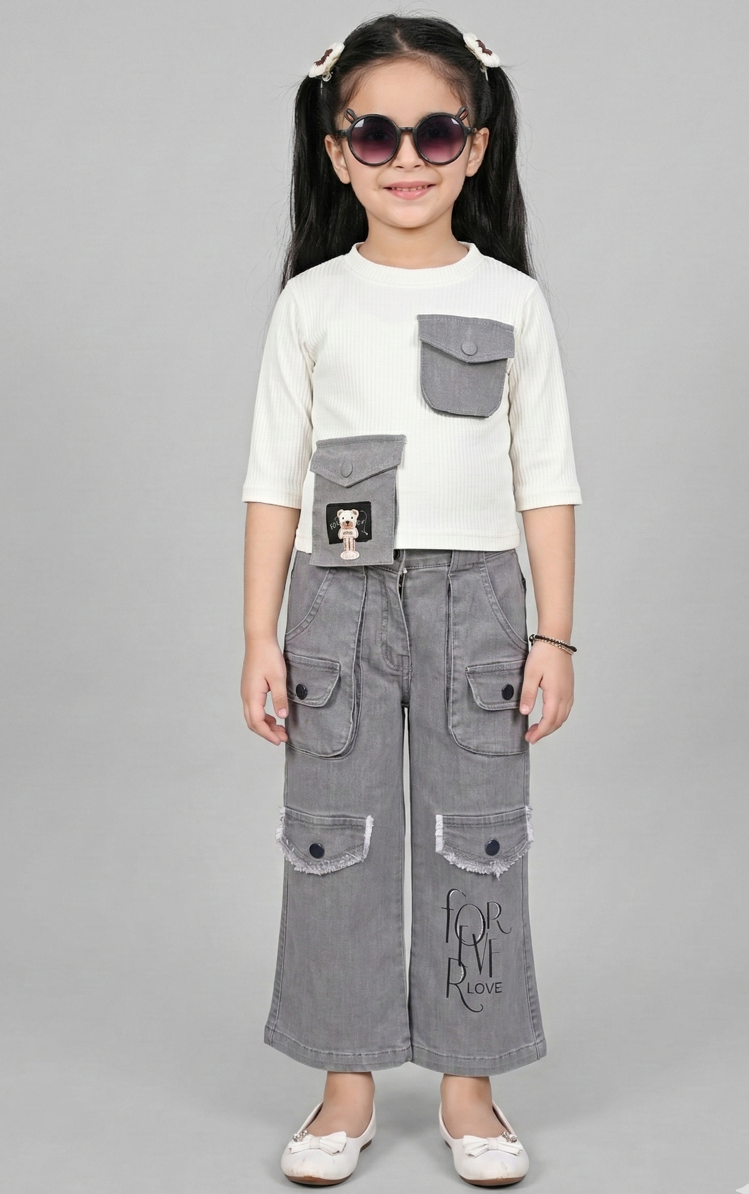 Set Includes: 1x Multi-Pocket Top, 1x Wide-Leg Cargo Jeans.